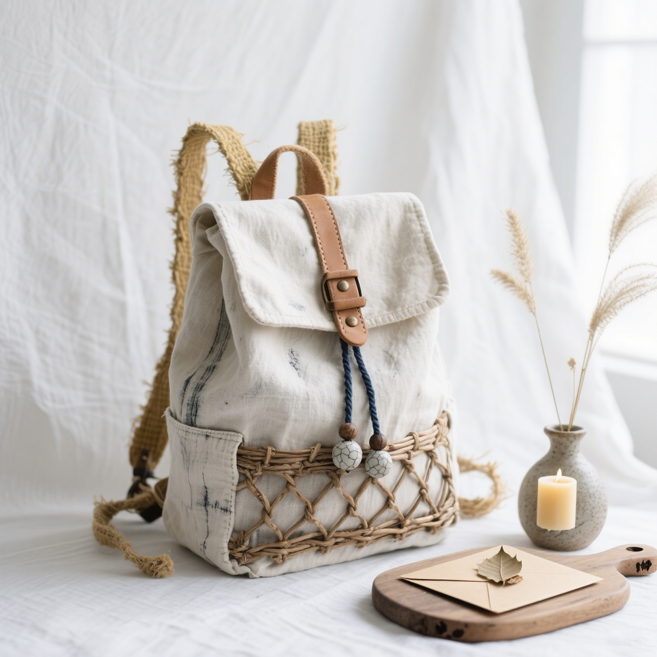 Cortina de lino estilo vintage, madera natural, transpirable pero no transparente